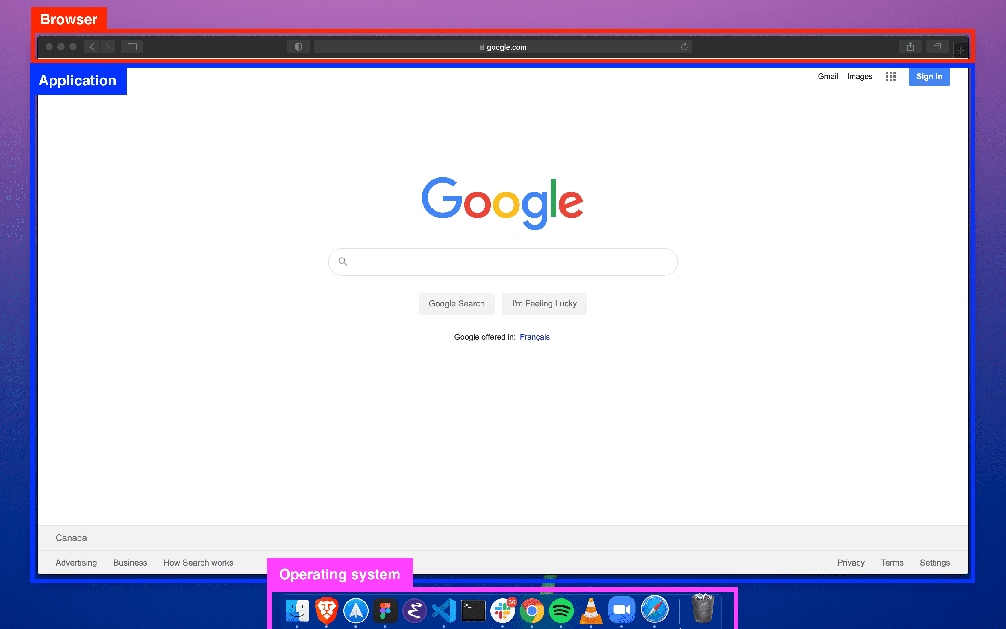 Web applications have to take into consideration three levels of scope inherent to their execution environment: the operating system, the browser, and the application itself.